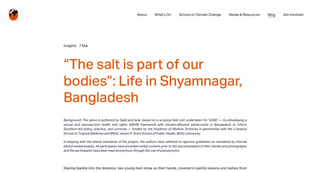 A blog based on a scoping field visit undertaken in Shyamnagar, Satkhira written by CARE Team members Israr Hasan and Md. Sajid Sultan Haque has been published on Oxford Climate Society Blog . Click the underlined text to read this blog.